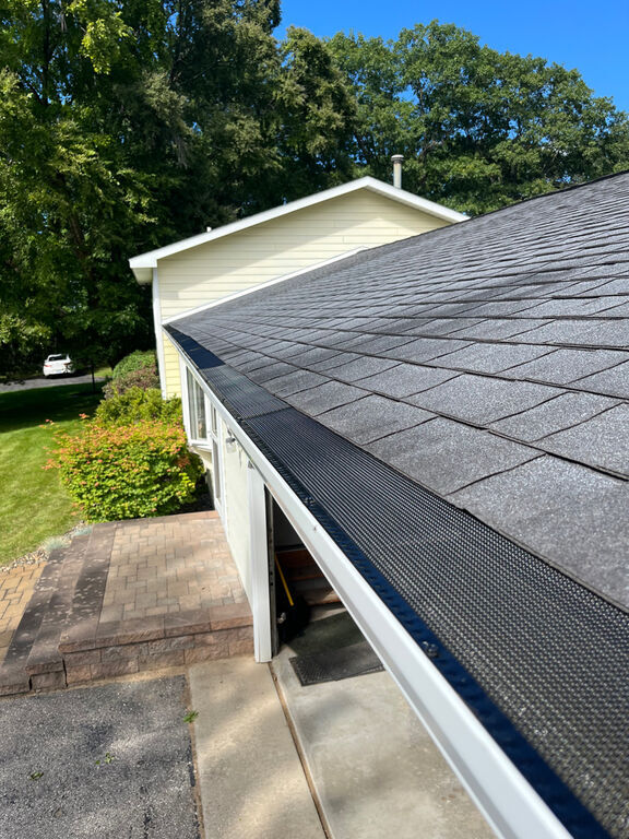 Gutter screen is a simple, affordable gutter protection option designed to help keep leaves and debris out of the gutter system. It installs directly inside the gutter and allows water to flow through while blocking larger debris.