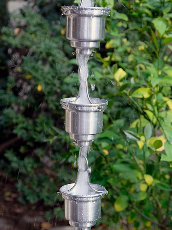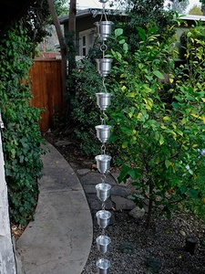 This original design has vertical, smooth surfaces and a stepped expression ("Naoki" means 'straight' or 'upright' in Japanese). Made of thick, pure unfinished aluminum, the cups have a folded lip at the top and are very stiff. The ring between the connecting wires adds a beautiful finishing touch to the design. All wires and hardware are high grade stainless steel.