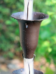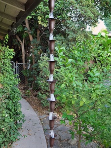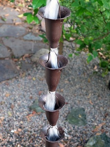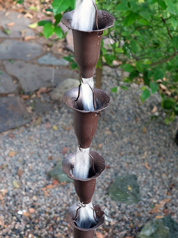 A beautiful new large cup chain, to handle all waterflow conditions, in aluminum with our popular matte bronze powder coated finish.
