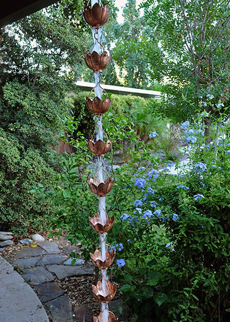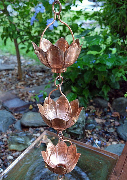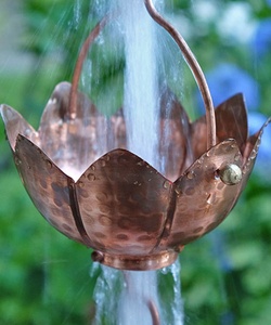 A beautiful new extra large cup chain, to handle all waterflow conditions, in pure hand hammered copper.