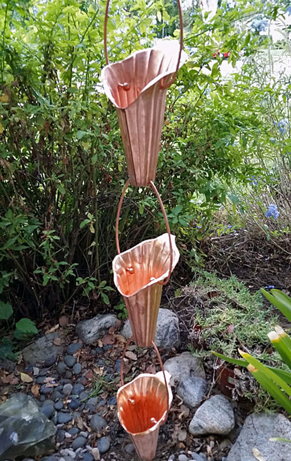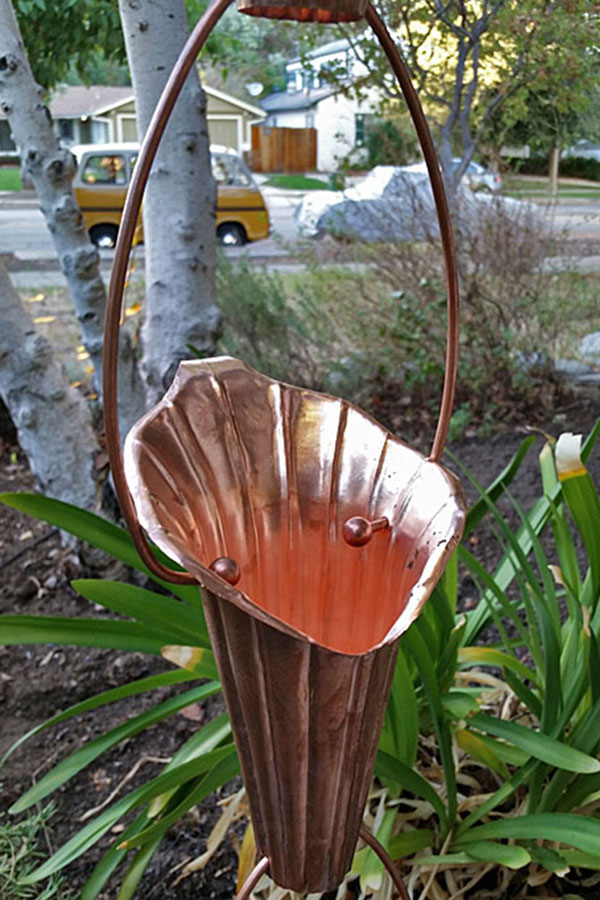 Carefully hand tooled, LARGE cups in pure copper, introducing our new Cala Lily™ rain chain!