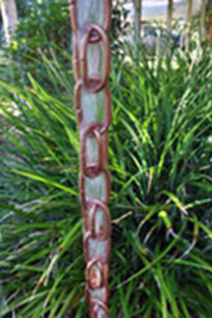 This link chain, in pure solid copper, features an extra link inset into the chain. Provides superior water flow than a single link chain.