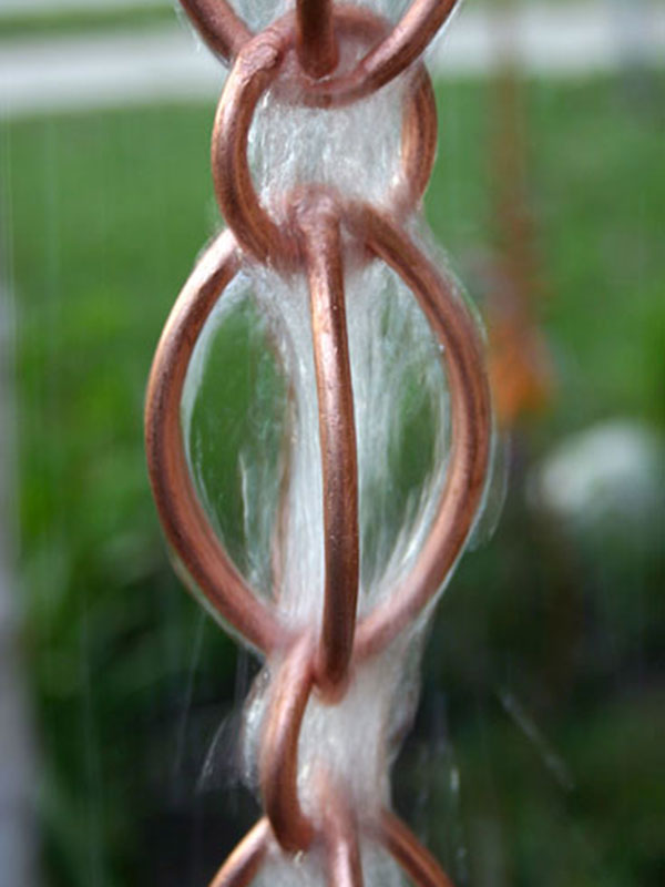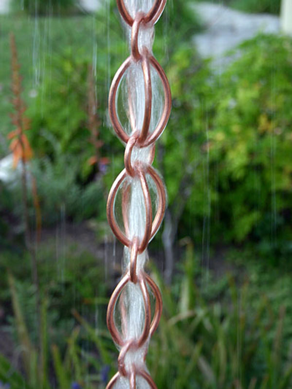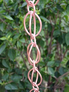 Oval Loop copper rain chain. Elongated loops in pure, unfinished copper are our newest variation of the double loop design.