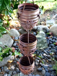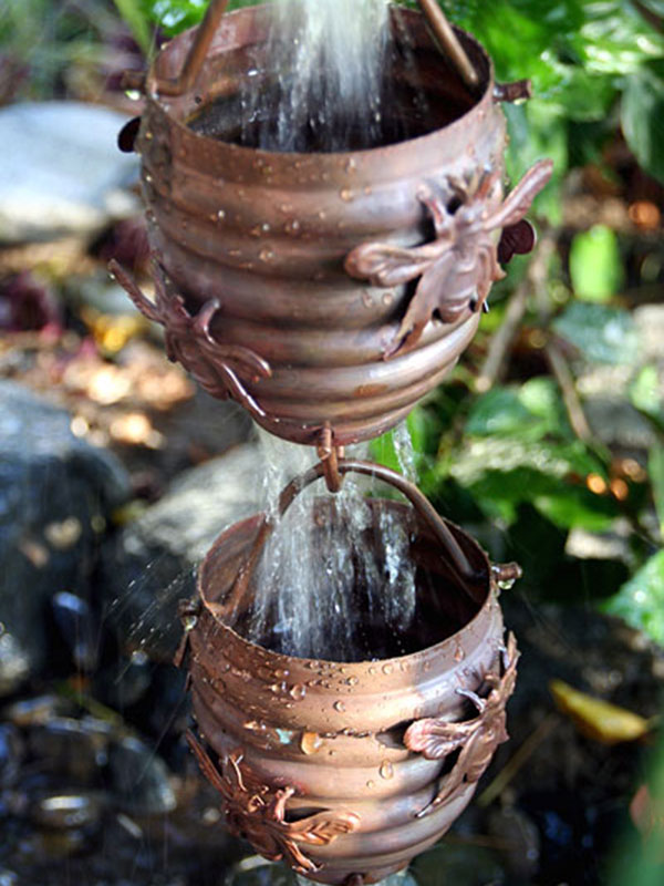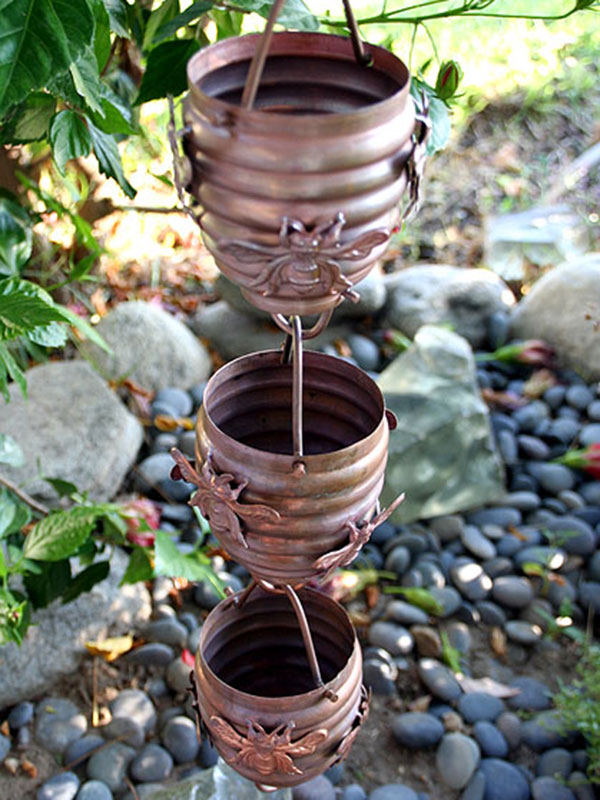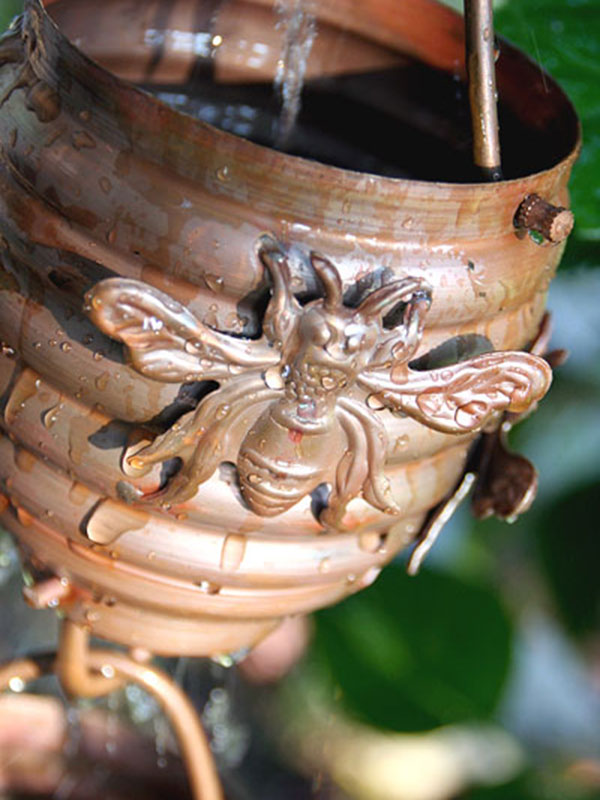 Realistic, detailed honeybees roam the sides of the "hive" in this pure, unfinished copper rain chain. All of our rain chains are made 100% by hand.