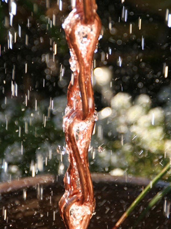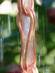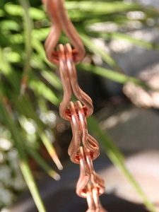 The Infinity Link is a new, exclusive rain chain design. Its graceful curves will enhance any home. Comes in unfinished, pure copper. Medium waterflow tolerance.