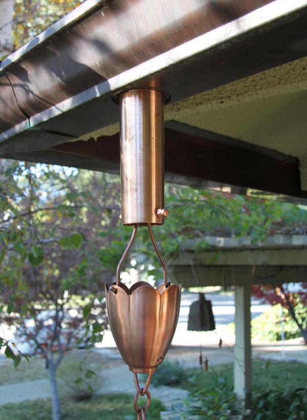 - Some gutters have an opening that is larger than the rain chains link or cup. In this case, a lot of water will miss the chain at the top. The Installation Kit directs the water onto (or into) the chain, helping it to function with maximum efficiency.