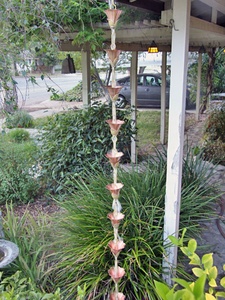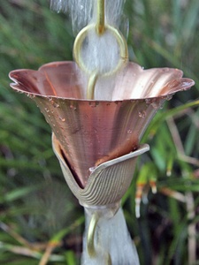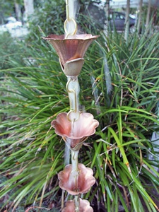Kanji Cups™ is a new design of mixed metals. Large flowers in pure copper are supported by thick hand cast, detailed brass bases, with pure brass links separating the cups.