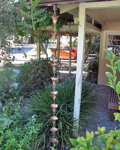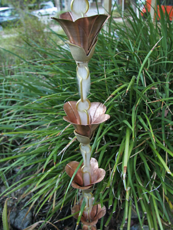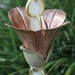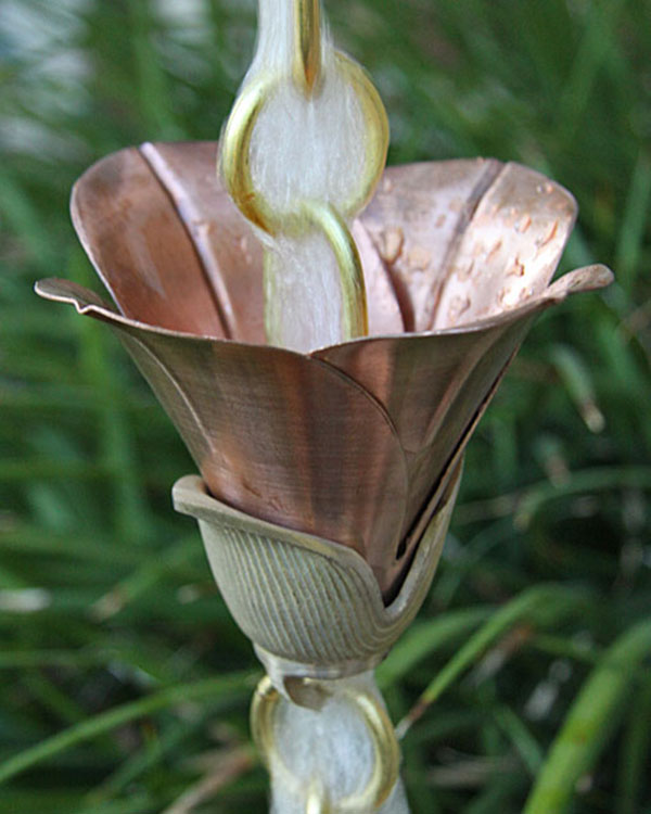 Kanji Cups™ is a new design of mixed metals. Large flowers in pure copper are supported by thick hand cast, detailed brass bases, with pure brass links separating the cups.