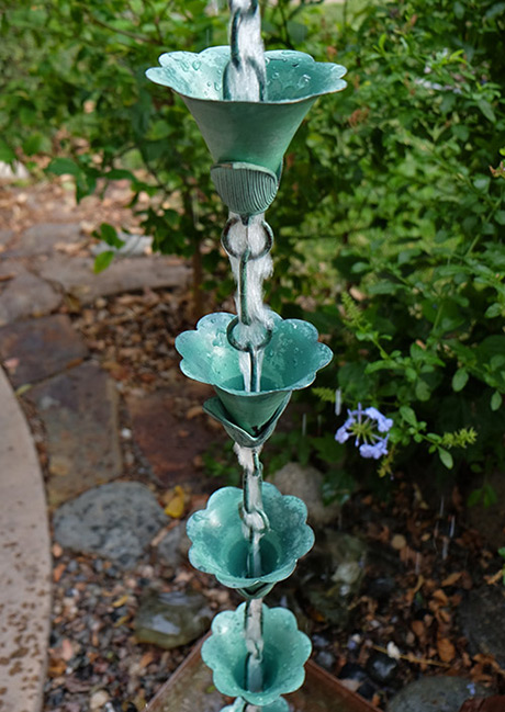 Kanji Cups™ is a new design of mixed metals. Large flowers in pure copper are supported by thick hand cast, detailed brass bases, with pure brass links separating the cups.