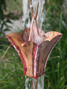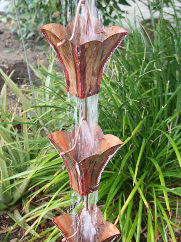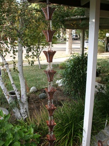 VERY LARGE, most massive version of our Square Cups line of rain chains. These Large Square Cups are also pre-aged and have a reddish streaking, a beautiful effect. Made of pure copper. One of the largest cups on the market today!