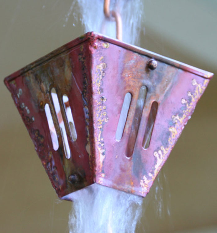 An exclusive addition to our aged square cups designs. This XL square cup adds a distinctive "slotted" cutout design. Made of pure copper, with a folded lip along the top for stiffness, each cup is individually welded together by hand.