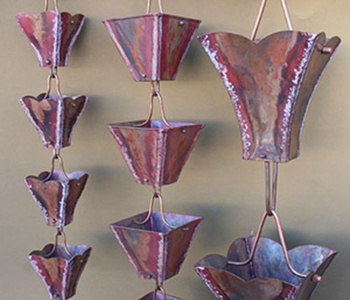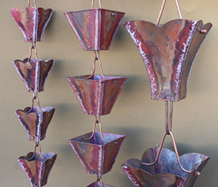 Individually crafted by hand, the sides of each cups are welded by hand - this is not a cheap, stamped product! Not a patina coating, the torch itself causes this same pre-aged effect as on our Star Flower chains and other Square Cup sizes. Perfect for Rustic/Southwest/Spanish style decor.