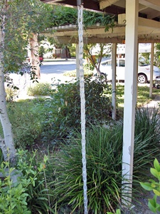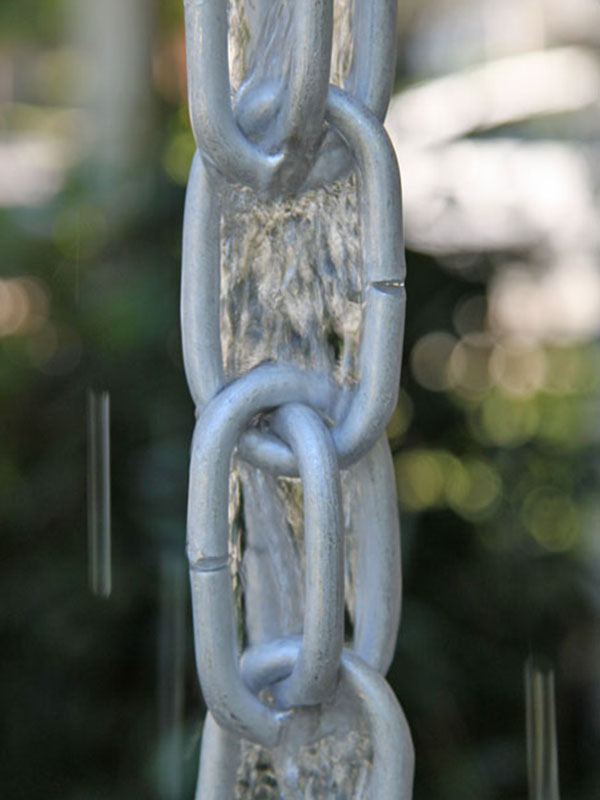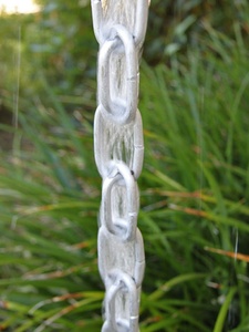 This new "extra link" chain is made of thick, pure aluminum! This link style adds an extra link every other one. The added surface area helps carry more water to the ground. Medium grey/silver color.
