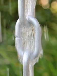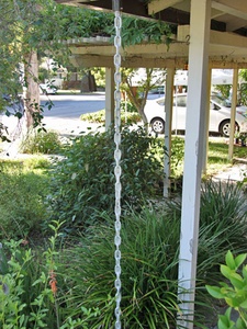 This new link chain is made of thick, pure aluminum! Lightweight and stiff, this inexpensive chain will add a designer look to your gutter system. Medium grey/silver color.